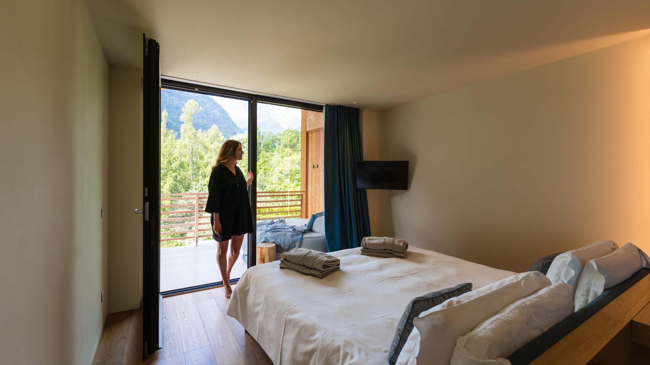 Camere eleganti, appena rinnovate e dall’arredamento moderno. Le camere Relax offrono un ampio bagno, nonché un confortevole terrazzo con divano da cui potete godervi l’aria fresca e il panorama mozzafiato sul Mont Avic. Grazie al letto rivolto verso la finestra, la prima cosa che vedete quando aprite gli occhi al mattino sono le cime maestose.
